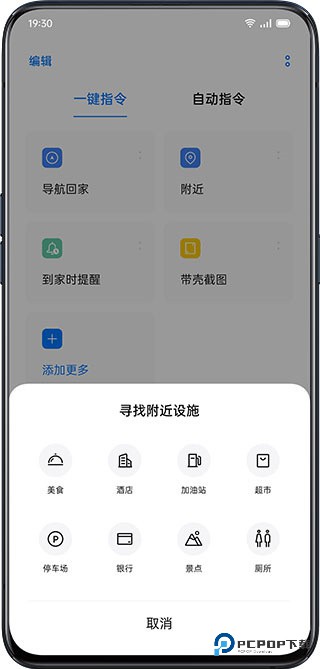打开「小布指令」,你可以设置「导航回家」、「附近」、「到家时提醒」、「带壳截图」等一键指令。
