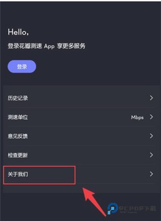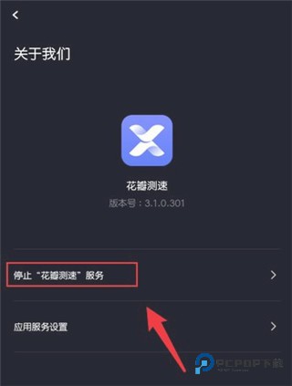 2、在关于我们页面中,点击【停止“花瓣测速”服务】,如图所示