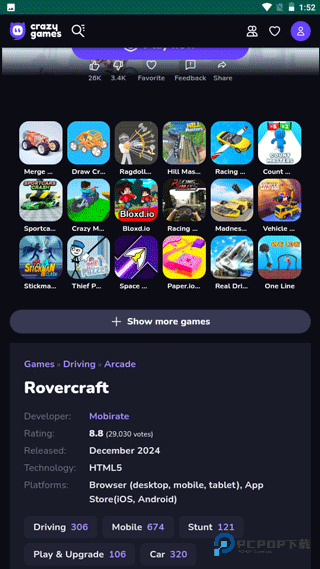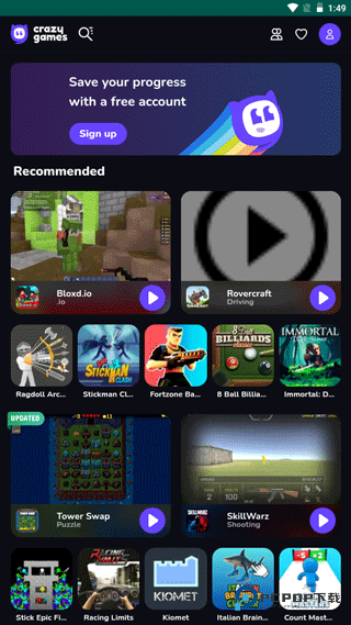 CrazyGames 是个超方便的网页游戏宝藏库。打开浏览器就能开玩各种游戏,省下下载时间又不占设备空间。这里游戏种类太全了:刺激的射击类、热血的 5v5 团队对战、治愈的模拟经营应有尽有。不管你是竞技玩家、休闲爱好者还是想放松一下,全年龄段用户都能轻松找到适合自己的作品,享受打开即玩的流畅乐趣。