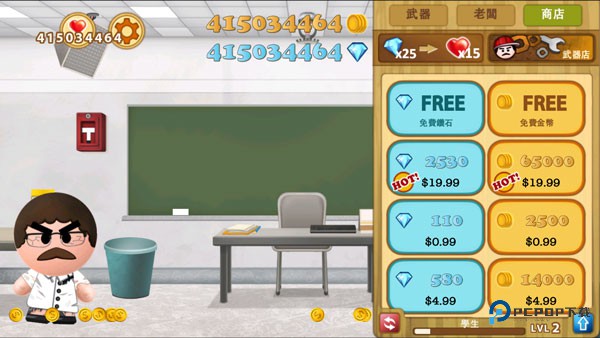 3、点击游戏右上角按钮,你还可以购买武器来攻击他;