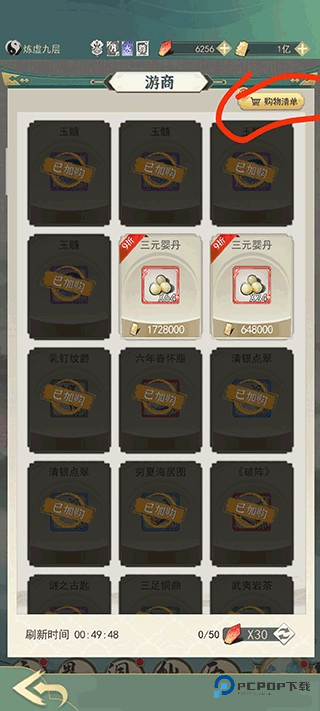 游商每 2 小时刷新。灵石能买的物品(三元婴丹除外)统统扫货。右上角购物清单功能很方便,先预定好,刷新后直接一键购买真省心!游商所有仙玉售卖的一律跳过。