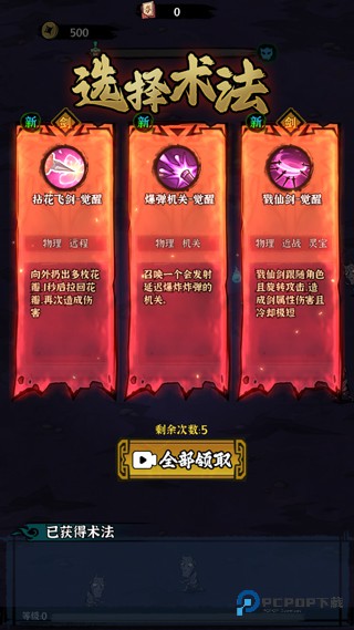 4、小怪掉落经验球记得捡!升级三选一强化术法,战力翻倍爽快;