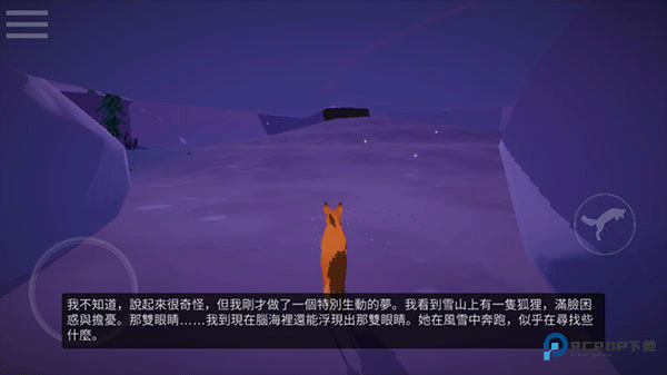 3、进入游戏后,狐狸从雪地中醒来,触发剧情对话,移动狐狸前进;