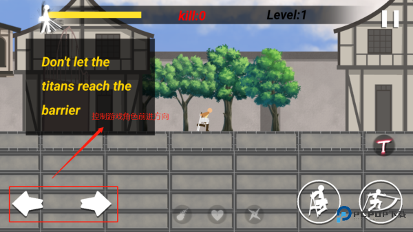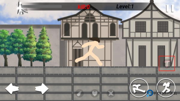 2、操控火柴人移动很简单,就是点击屏幕左下方或右下方的箭头按钮来控制左右方向。