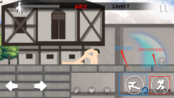 4、火柴人遇到敌人别慌,按住右侧的【攻击图标】不松手,就能持续发动各种攻击。
