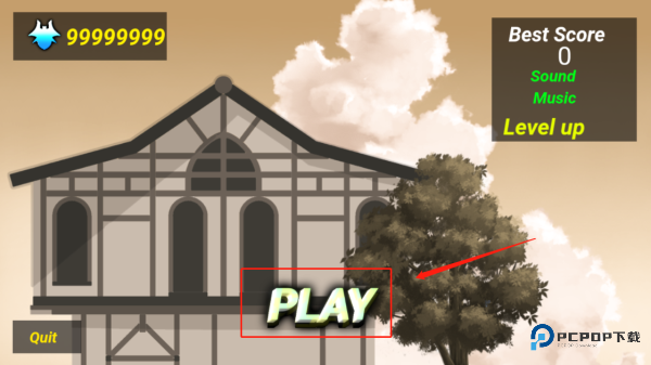 1、启动游戏,找到并点击【PLAY】按钮,就能进入村庄场景开始你的冒险了。