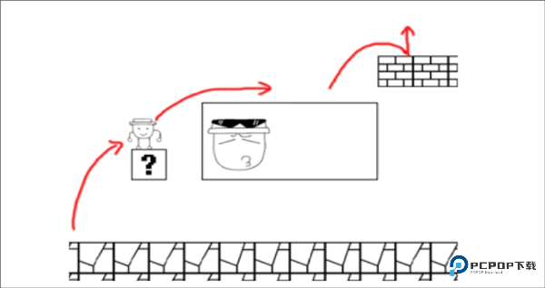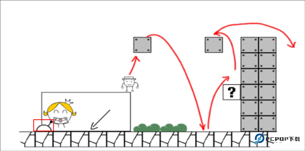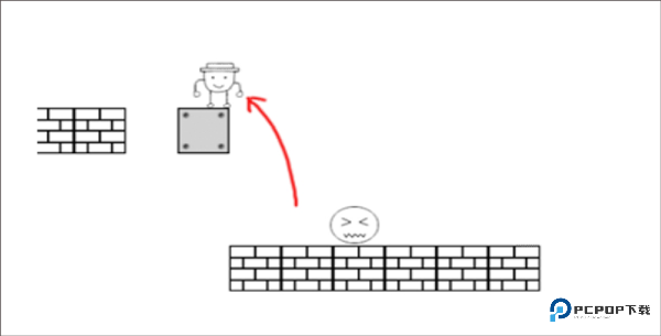 2、千万不要顶新方块!先跑回第一个方块左上角,跳跃顶出隐藏透明砖(仅 1 次机会)