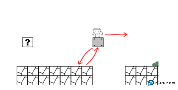 2、原地小跳激活第一个隐形砖,精准落在 "?" 砖块上。紧接着蹭到砖块最边缘再跳,第二个机关现身!跃至机关平台后立即向右跳,注意躲开所有伪装成白云的隐形刺球 —— 这游戏里云朵都是带刺的!