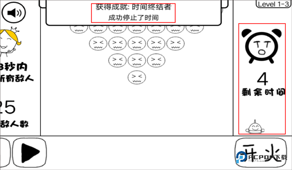瞄准大炮持续攻击闹钟!别看炮台左右移动唬人,其实它能超边界射击。倒计时结束所有敌人自动消失,根本不需要硬刚 —— 没想到吧?