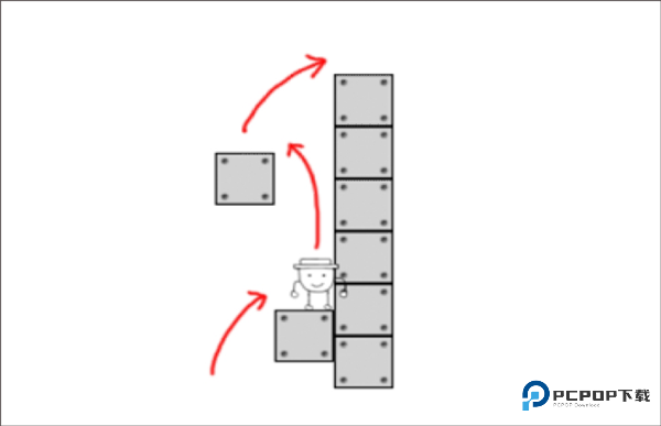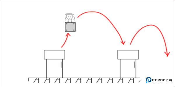 3、火速顶破新方块后,光速回撤到初始方块顶端