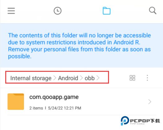 4)找到手机储存根目录/Android/obb 文件夹,创建和游戏包名“com.xxx.game”相同名字的文件夹