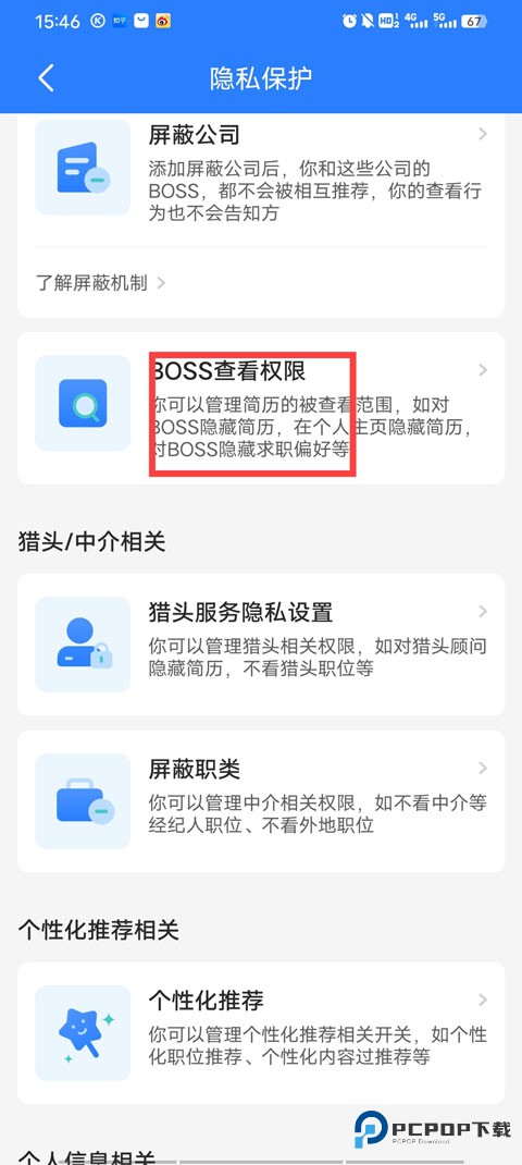 3、点击【BOSS 查看权限】。