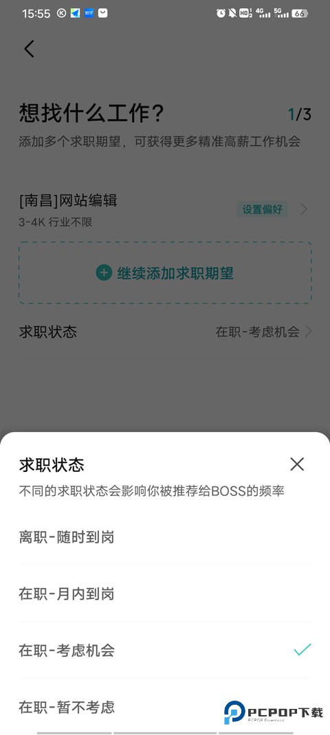 3、选择【在职,暂不考虑】。