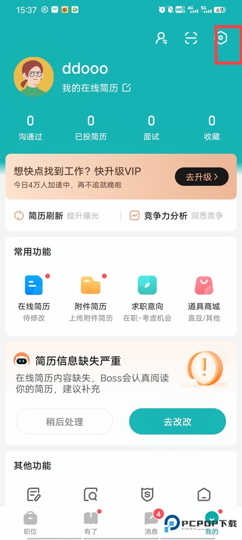 2、进入【求职状态】。