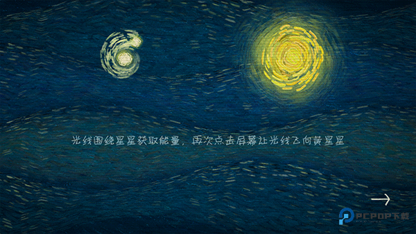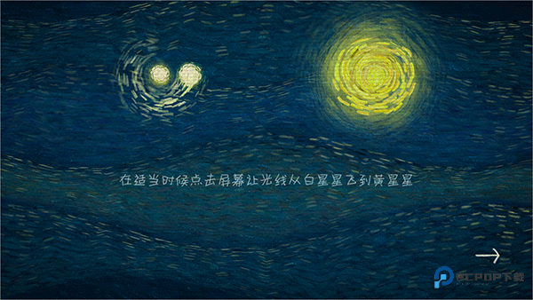 1、在合适的时机轻点屏幕,引导星光从白色起点星球出发,开始向黄色终点星球前进。