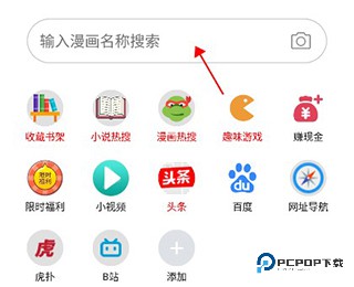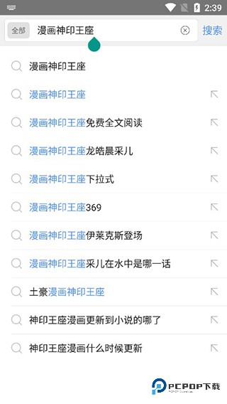 2、 在出现的搜索栏里,输入你想找的漫画书名,比如这里例子里的 “漫画神印王座”,输好就点击搜索按钮或直接点键盘上的搜索键。