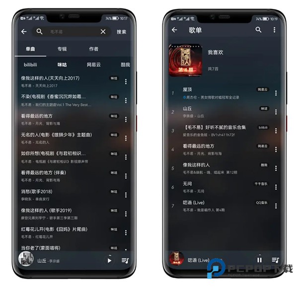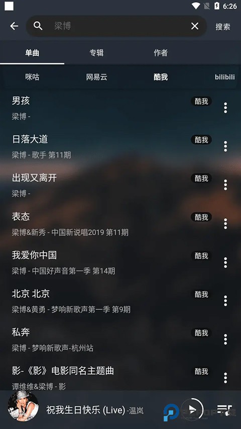 5、有了音源,再进 APP 进行音乐搜索,便可以搜索到音乐内容,搜索结果会按照不同音乐分别展示,不同音源搜索结果不完全相同。