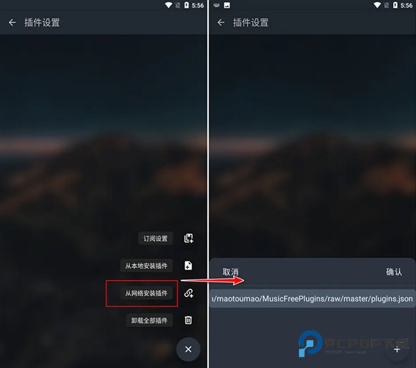 3、选择从网络安装插件,粘贴进插件链接。
