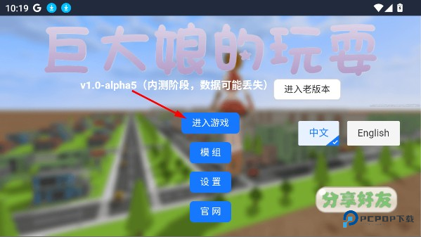 1、启动巨大娘的玩耍游戏,等待场景加载完毕,进入首页后点击开始游戏。
