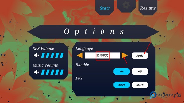 2、找到language,点击右箭头,切换语言至简体中文,点击apply;