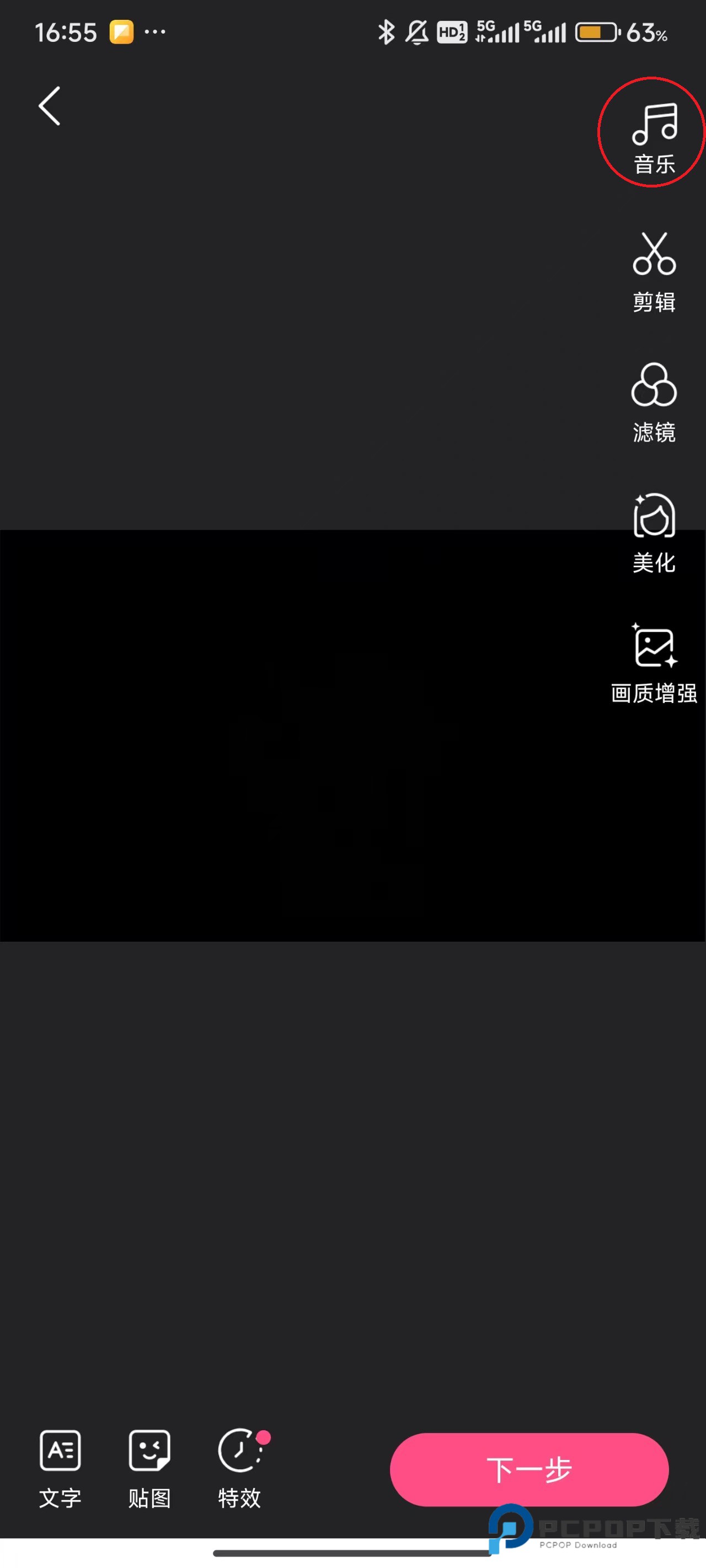 6、如果觉得视频单调,可以点击屏幕右上角的“音乐”来给视频增加音乐。