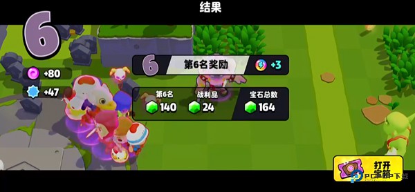 7、倒计时结束,游戏会统计本场所有队伍的淘汰数(或者宝石数),淘汰最多的队伍是胜利者。结束之后,无论是输是赢,系统都会根据表现发些金币、宝箱之类的奖励品作为鼓励。