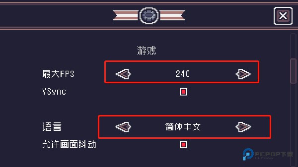 2、在语言设置位置,将语言切换为简体中文,点击最大FPS值还可设置为最大值,以获得更高的流畅体验