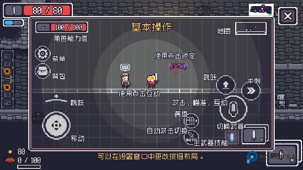 1、游戏的基本操作如下图所示,除了默认操作方式外,玩家也可在设置窗口中更换按钮布局
