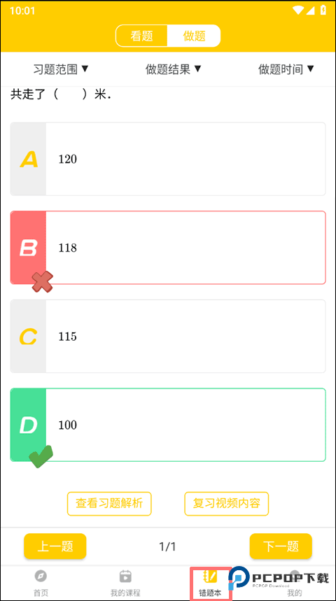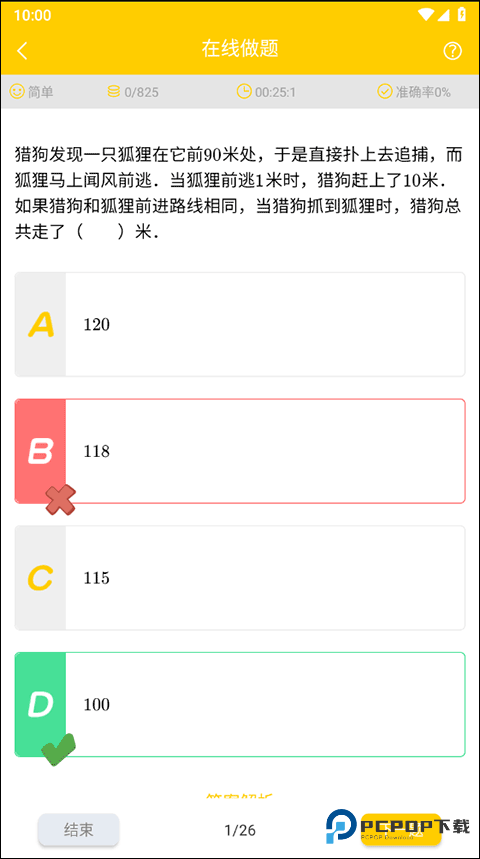 4、接着,软件会在用户选择好答案后及时反映这道题的正确解答,正确的话,用户就会进入下一题,错误的话用户就会看到自己的错误,并且能够看到正确答案;