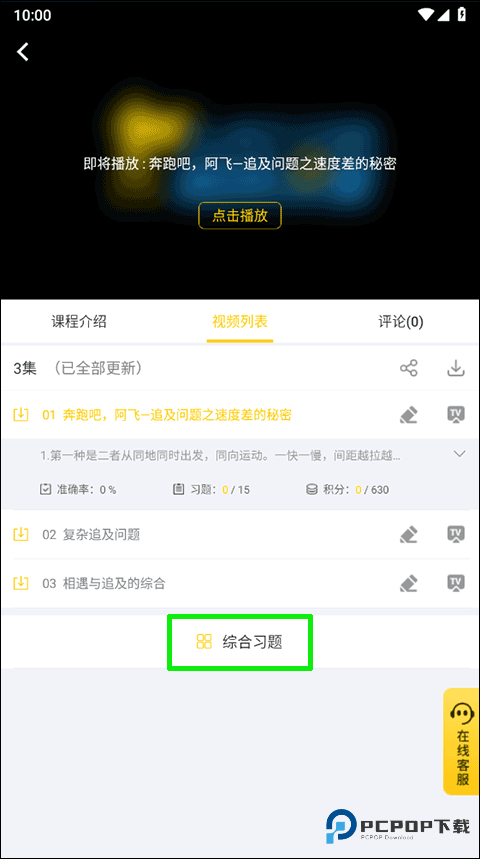 2、然后,在具体课程中,同学们可以观看视频教学来学习相关知识,也可以找到并点击“综合练习”选项来做题巩固;