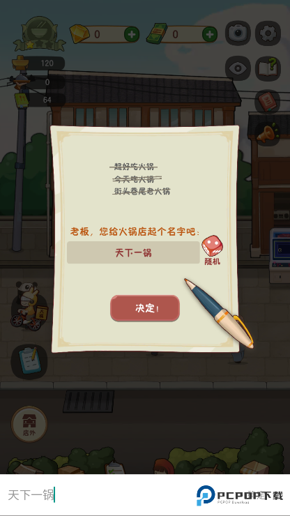 7、准备好之后,玩家需要给自己的火锅店取一个响亮一点的名字;