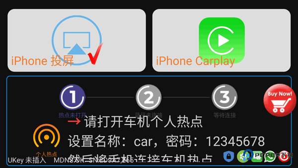 1、不用购买硬件盒子的 carplay,iphone 投屏软件下载安装就能使用