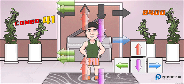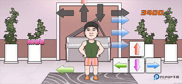 1、进入游戏后,箭头会随着音乐的节奏上升,玩家则需要在箭头到达框中时按下相对应的箭头来让刘耕宏保持健身动作