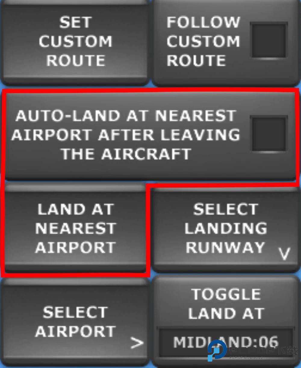3、启动这个按钮后,当你离开飞机时飞机能自动启动降落功能,自动降落在附近的飞机场。