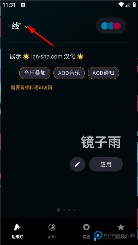 2、主页中用户可点击左上角进行边缘灯显示设置;