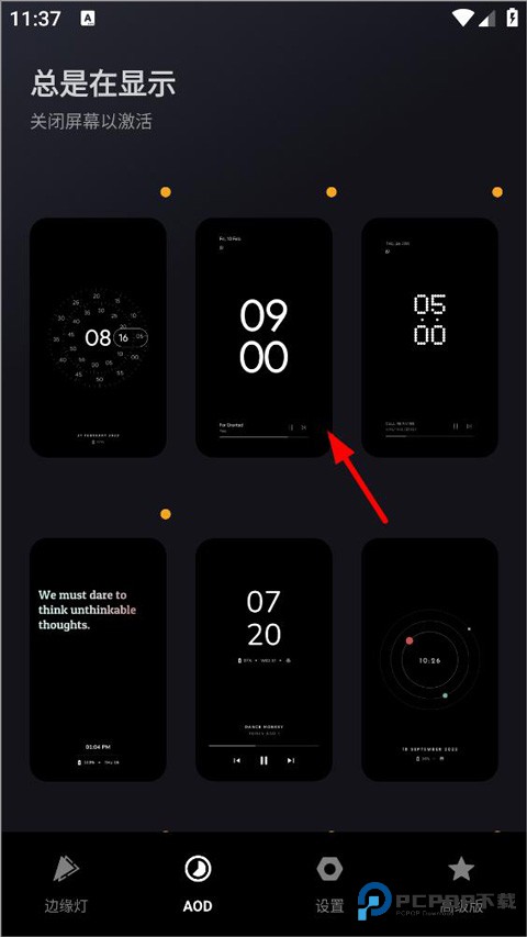 6、边缘灯设置后,用户打开AOD,用户可在该页面选择喜欢的屏幕显示方式;