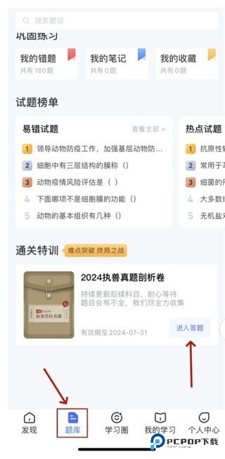 2、点击【题库】,往下滑至【通关特训】,选择【2025执兽真题剖析卷】;