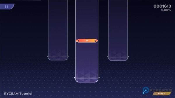 1、下图为轨道,玩家点击它将会高亮显示,之后各种音符会在轨道中落下;