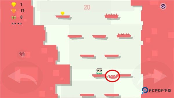 跳跃的时候,您将捡到不同的道具,例如火箭,炸弹等,闯关就会变得很轻松。