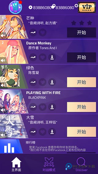 3、其次再选择喜欢的歌曲,等待游戏加载,跳转游戏页面;