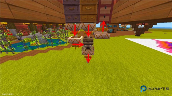 在末端漏斗下放置熔炉,熔炉侧面再接漏斗(方向朝炉)