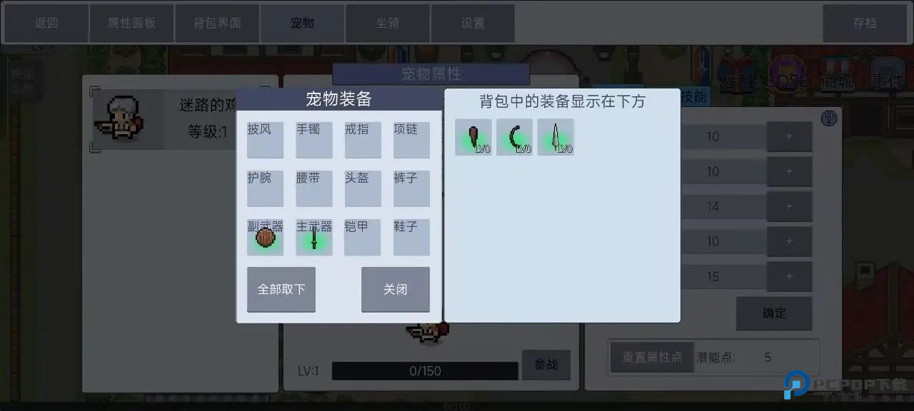 宠物设置参战后,装备剑盾。宠物在当前阶段能加生存并轻微提升输出。
