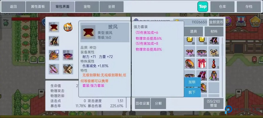 做完披风,别误回收了。优先选带强力或狂怒套装的披风,属性不看也行。无套装就选力量或敏捷的披风先用。给宠物也穿合适的披风,记得随时更新装备。