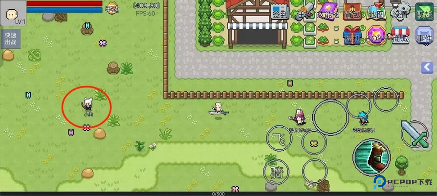 跟随任务提示,在村口找杂货店老板(注意画面坐标)接任务。开地图去打指定怪物。