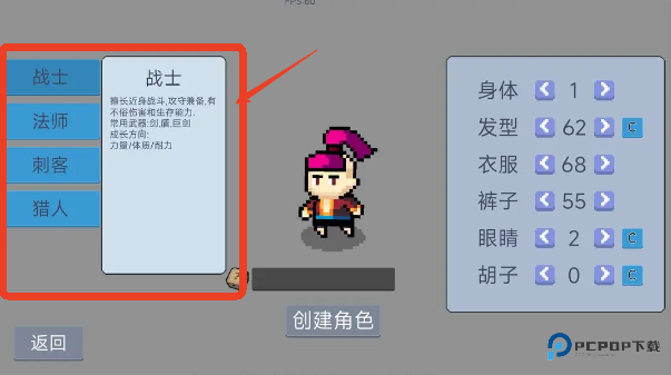 1、登录游戏后创建角色并选择职业。