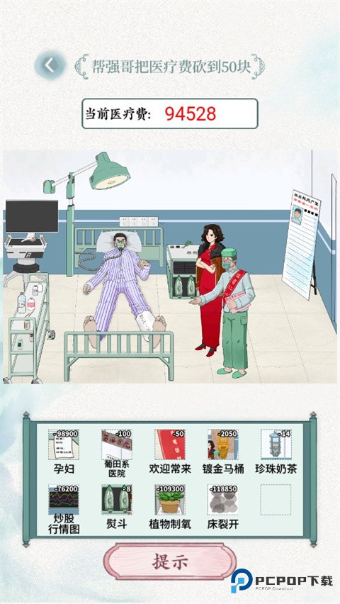 3、这里需要帮强哥把医疗费砍到50块;