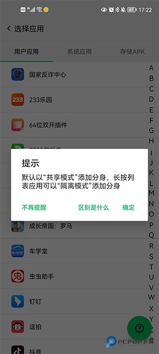 2. 快速选择需要克隆的应用,然后添加多个应用
