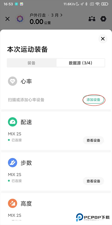 2、找到“心率设备”的功能选项,点击该选项,即可将软件与相关的心率监测设备进行连接;