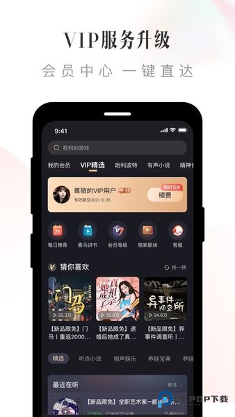 喜马拉雅FM免费版是一款热门的音频内容平台,提供海量免费音乐、有声读物、广播剧等内容。用户可以轻松订阅各种节目,随时随地畅听。界面简洁易用,推荐精准,满足用户不同需求。支持离线下载,方便随时收听喜爱内容。总体而言,喜马拉雅FM免费版为用户带来丰富多样的听觉享受,是一款优秀的音频平台。