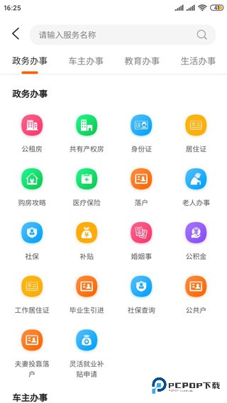 4、点击指南,即可进入所在城市的办事指南,包括公积金、户籍身份、社保、车辆交通、教育资讯等民生办事类实用信息;
